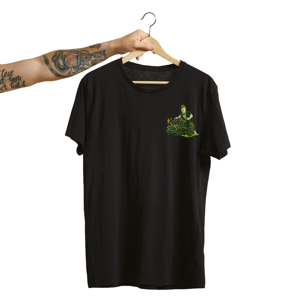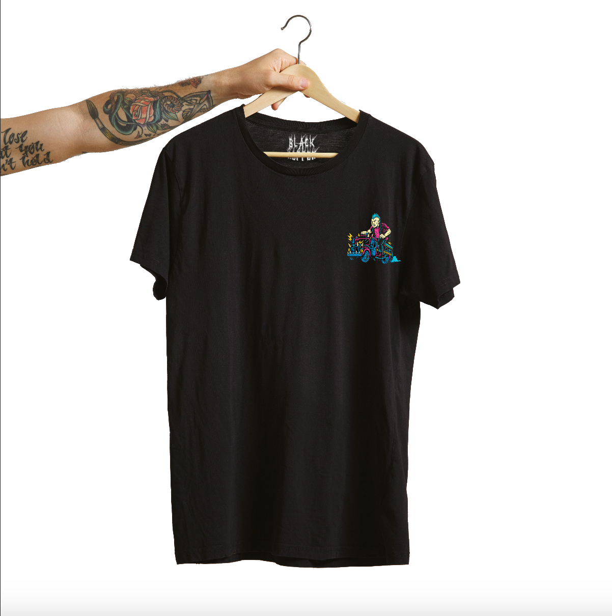 Camisa negra, 100% algodón (gramaje 200), impresión DTF de alta calidad.